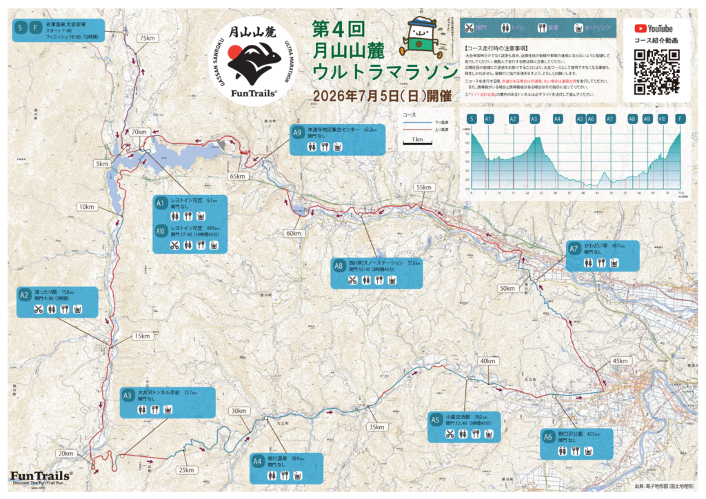 | A10 | レストイン花笠 | 69.9km | 10時間45分 | 17時45分 |