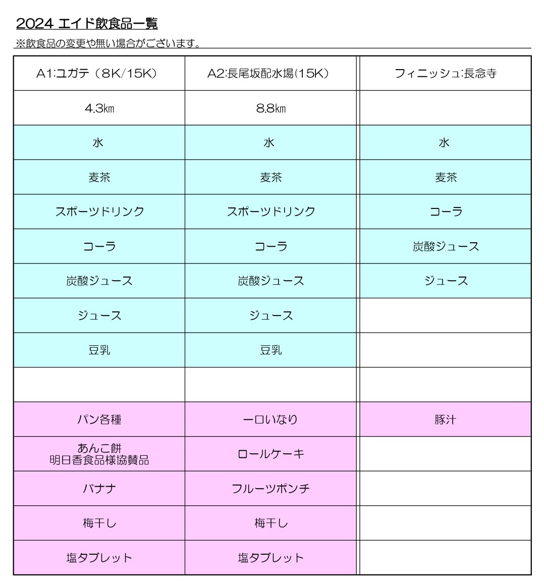 エイドでの提供メニュー